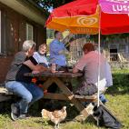 Das Wetter verschlechterte sich im Laufe des Tages im Sinne von leichtem Regen über Landregen zu intensiven Niederschlägen. Dennoch hielt die Gruppe zusammen und zeigte hervorragenden Teamgeist. Generator und Kaffeemaschine trugen zum Halten der Stimmung bei. Über Mittag gingen einige zum Aufwärmen in nahe gelegene Restaurants oder verzehrten das Mitgebrachte. Es war definitiv kein Grillwetter.
