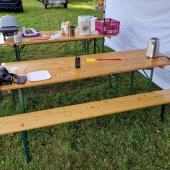 Bis zu 8 Personen waren im Shack, Fachsimpeln und Experimentieren fanden statt. Martin HB9AUR überraschte mit dem «Gipfeli-Express». Viele Wanderer und Schwingbegeisterte passierten unseren Shack schon früh am Morgen.